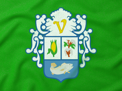 Escudo, campo em branco e azul céu, contornados de azul anil, com a letra V amarela em destaque, ao centro três figuras: o milho, o algodão e o peixe. O brasão ganha contornos com matizações em tons de azul; a letra V ganha estilo mais moderno na cor amarelo ouro com contornos dourados; o milho ganha uma estilização moderna, representando a agricultura do município, mantendo as mesmas cores; o algodão que retrata uma das primeiras fontes econômicas do município, o peixe representa a riqueza e a importância do nosso Açude Araras, o fundo do milho e do algodão ganha a cor bege, lembrando o solo rico do município.